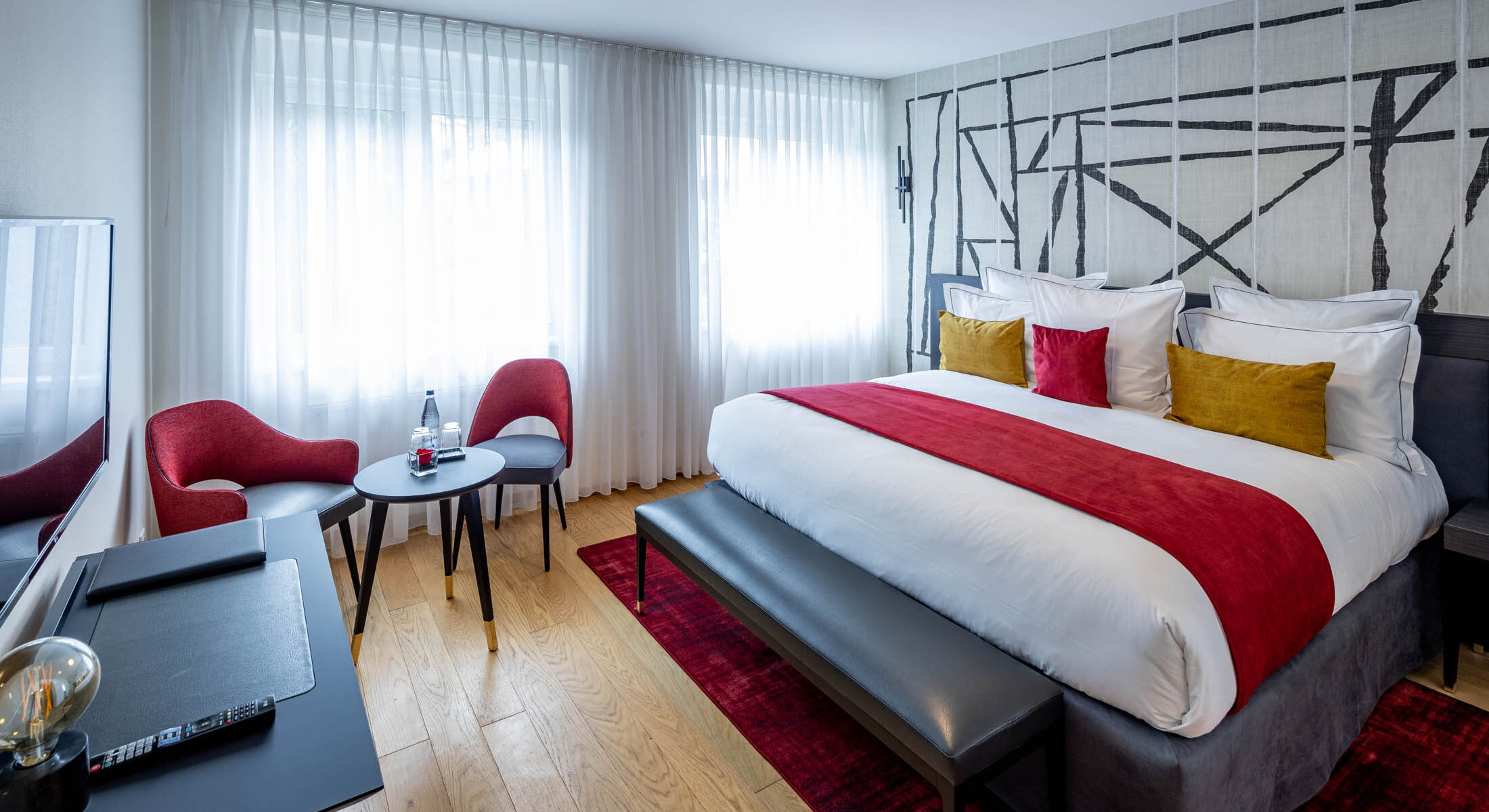 Succombez au confort de notre Chambre Double Deluxe, spacieuse et élégante, au design contemporain. Avec sa literie haut de gamme, elle offre un cadre idéal pour un séjour relaxant et raffiné.