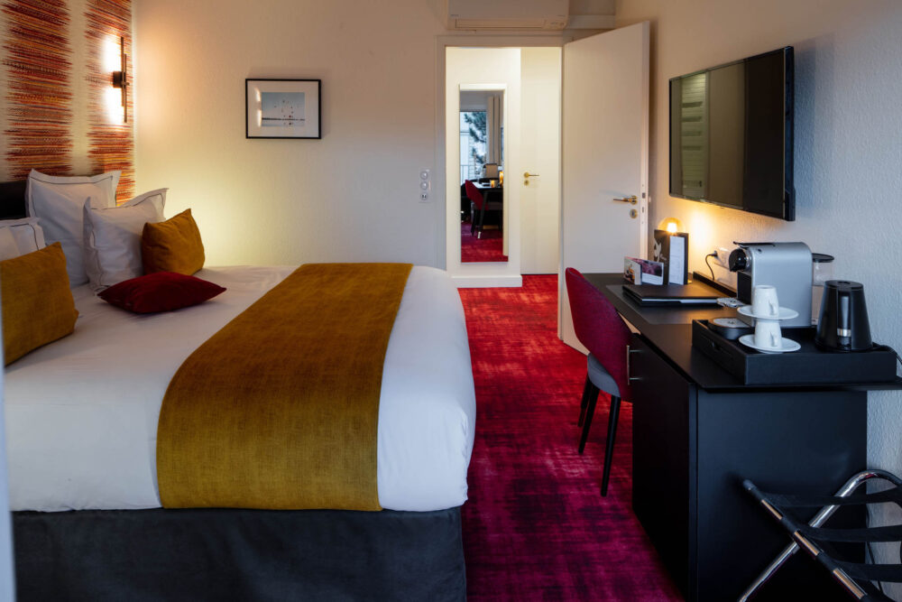 Toutes les chambres disposent de climatisation, mini-bar payant, coffre-fort, peignoir, bureau, plateau d’accueil avec machine Nespresso et bouilloire, et sèche-cheveux.