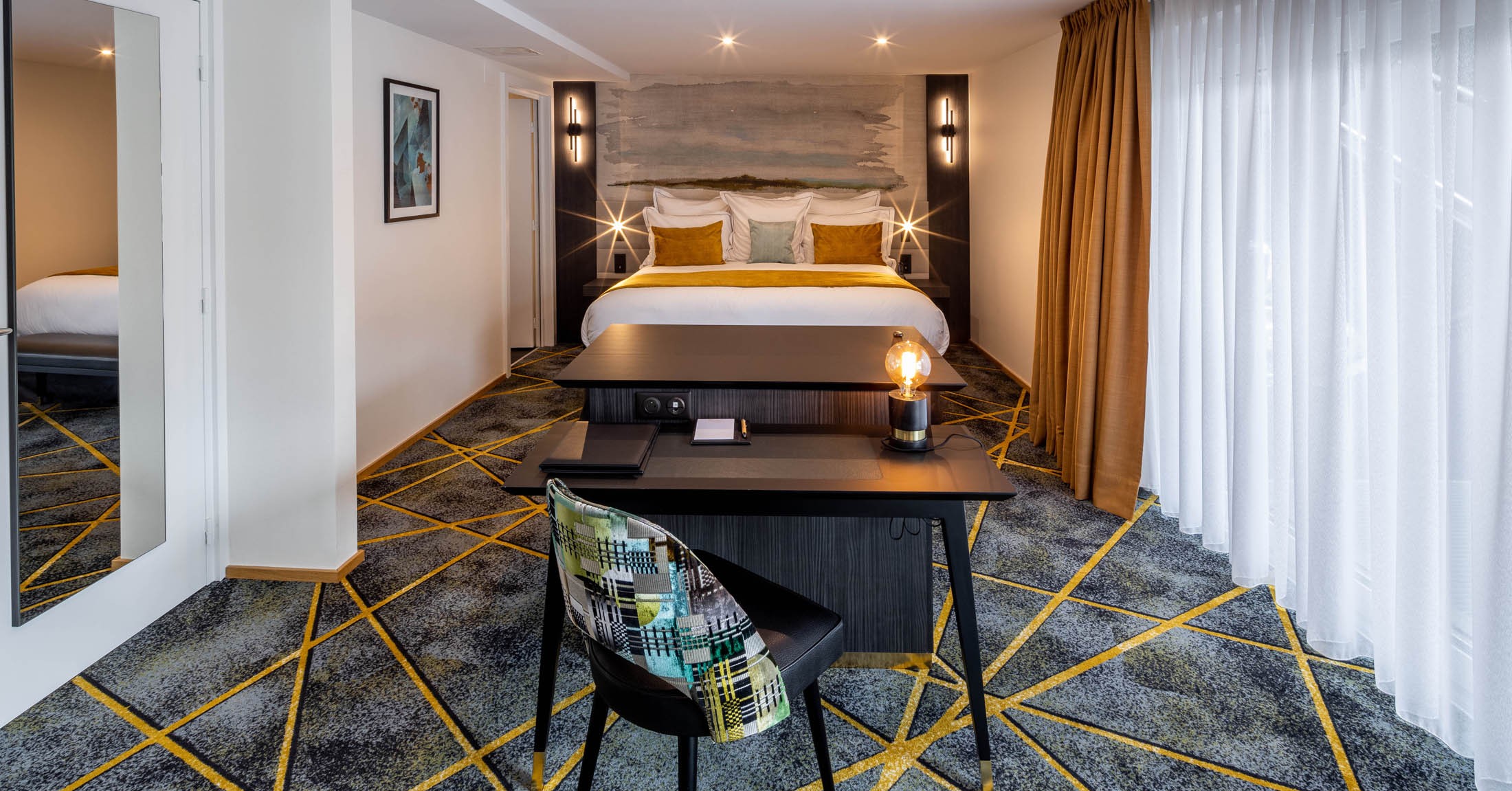 Chaque suite est équipée de climatisation, mini-bar payant, coffre-fort, peignoir, bureau, plateau d’accueil avec machine Nespresso et bouilloire, et sèche-cheveux, pour un séjour confortable et serein.
