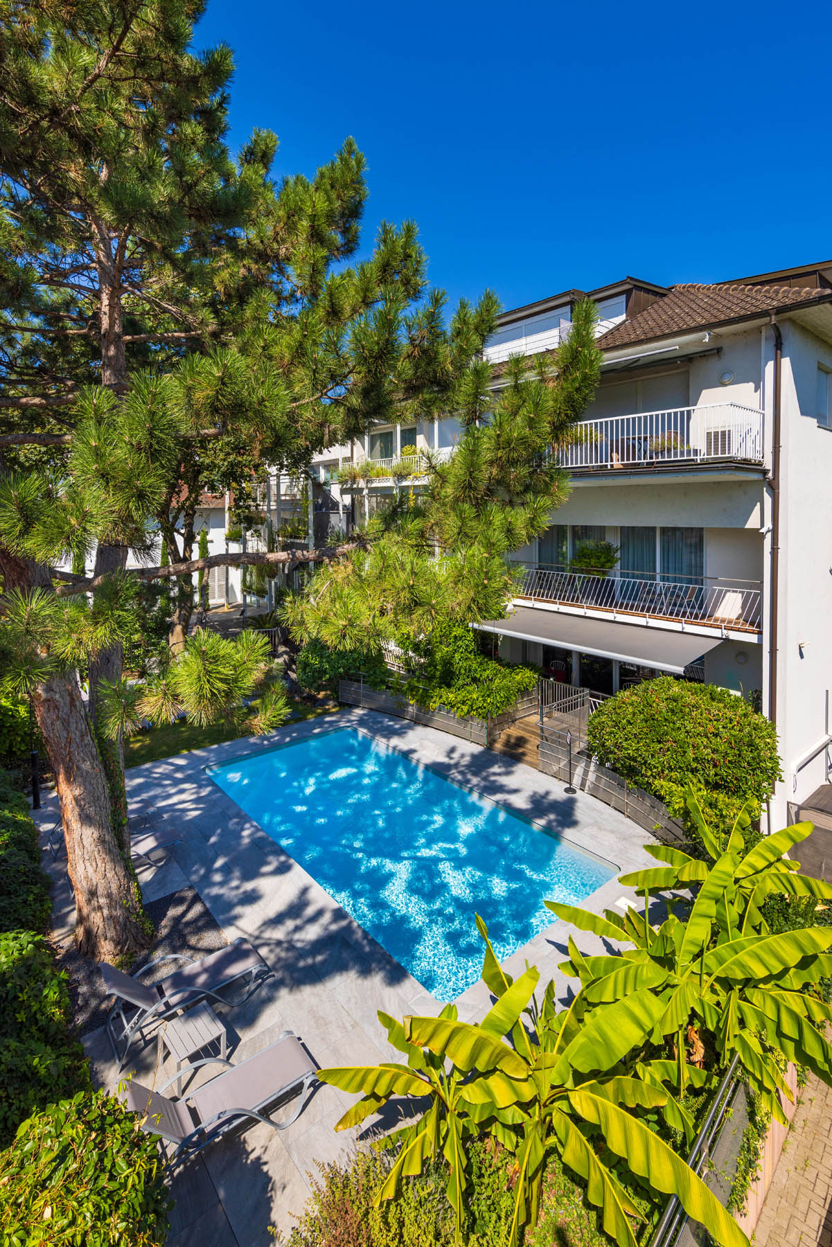 Piscine extérieure et bassin de nage intérieur